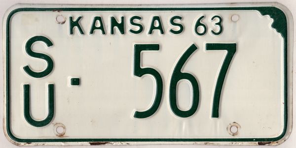 Kansas 1963 Car License Plate Sumner County Su 567 Kansas License Plates